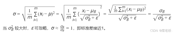 其中ε 是一个微小值(比如,10e-7之类的),它是为了防止出现除以0 的情况。接着,Batch Norm层会对正规化后的数据进行缩放和平移的变换: