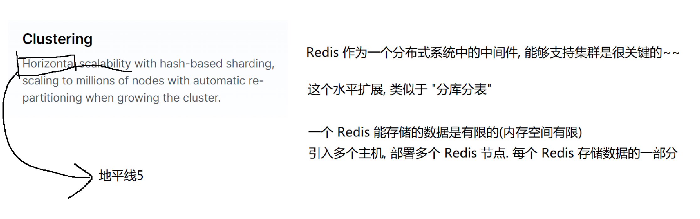 水平拓展,类似于"分库分表",引入多个集群,引入多个Redis缓存;