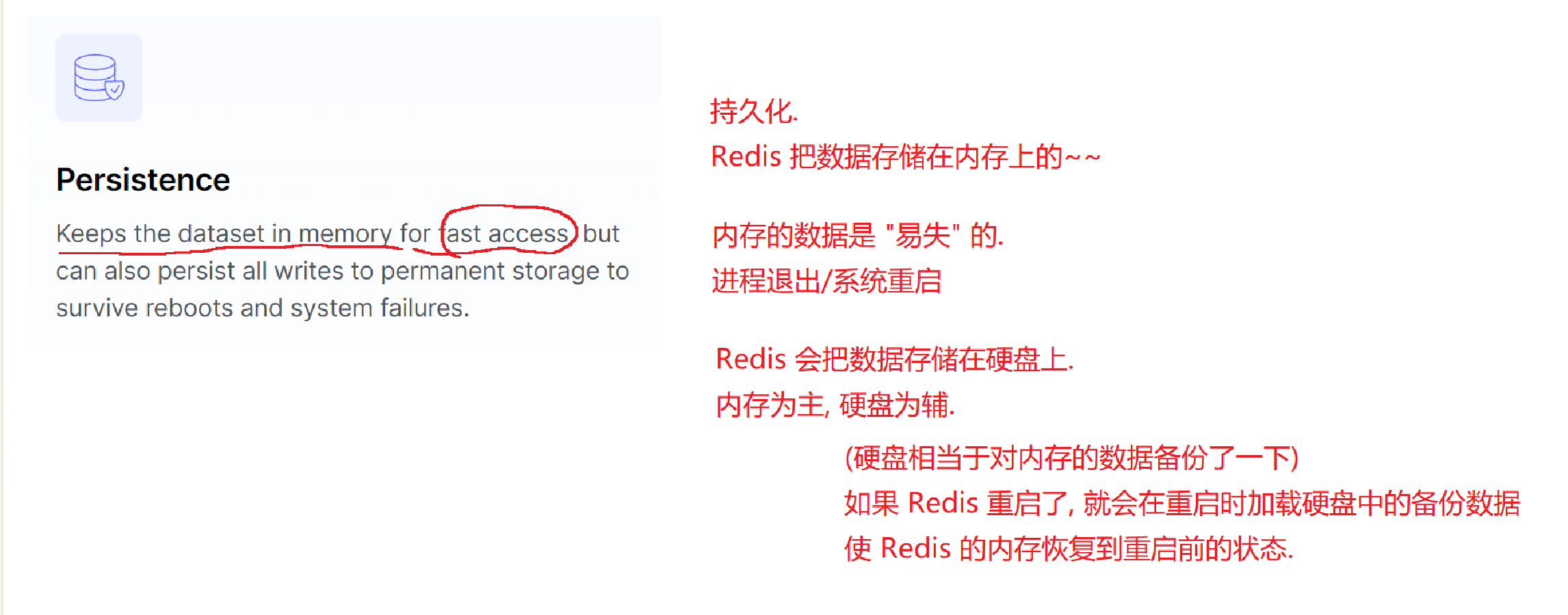 4)持久性,Redis把内存放在内存上,内存是易失的;