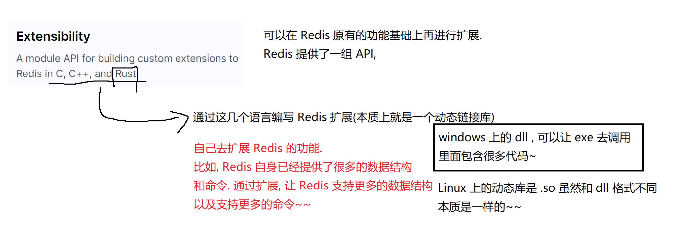 通过C,C++,Rust可编写Redis扩展(本质是动态库)。