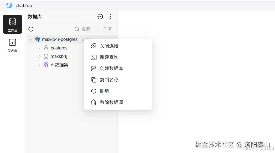 postgres数据库可能导致 Flyway 初始化失败。请进入数据库管理界面,手动创建一个名为maxkb4j的新数据库。