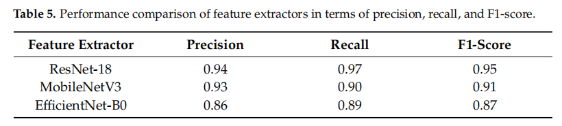 对比 ResNet-18、MobileNetV3、EfficientNetB0 的特征提取效果: