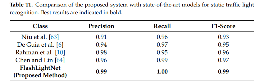 可见,现有方法均未支持闪烁交通灯的识别,而 FlashLightNet 是首个在统一框架中同时处理静态和闪烁状态、且满足实时性要求的方案。