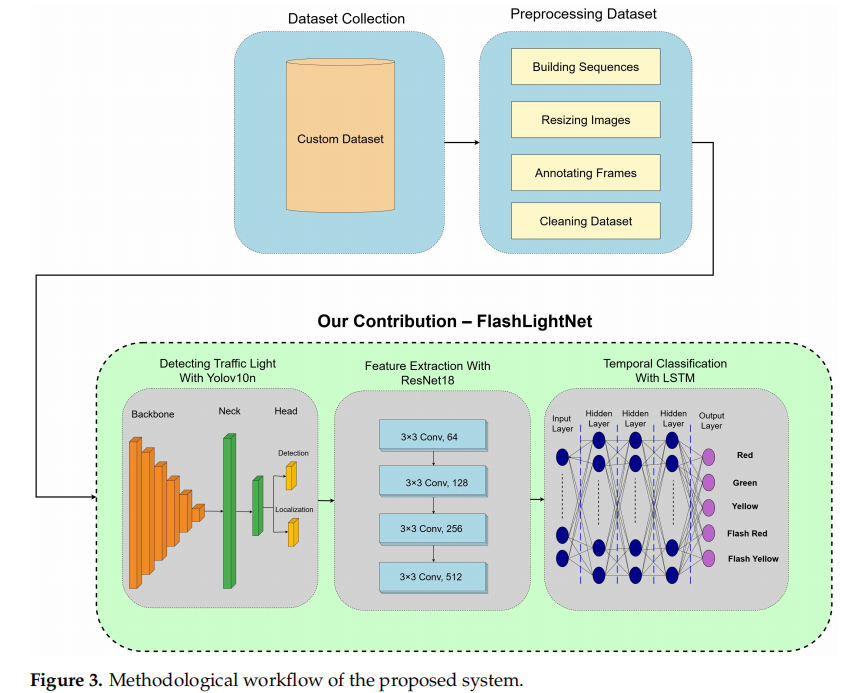 FlashLightNet 通过 YOLOv10n、ResNet-18 和 LSTM 的有机结合,构建了一套高效、精准、实时的交通灯检测与分类框架,成功解决了闪烁交通灯识别这一核心技术难题。其创新点在于: