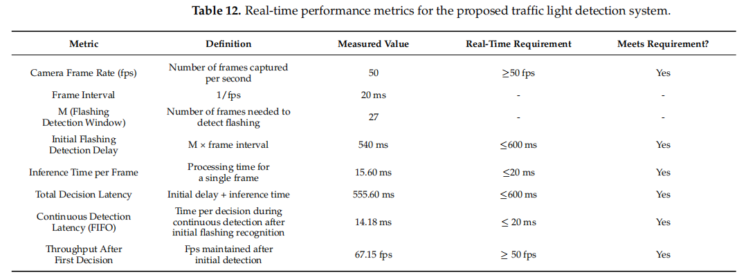 论文定义实时性标准:帧率≥50fps、单帧推理延迟≤20ms、总决策延迟≤600ms。实验结果如下: