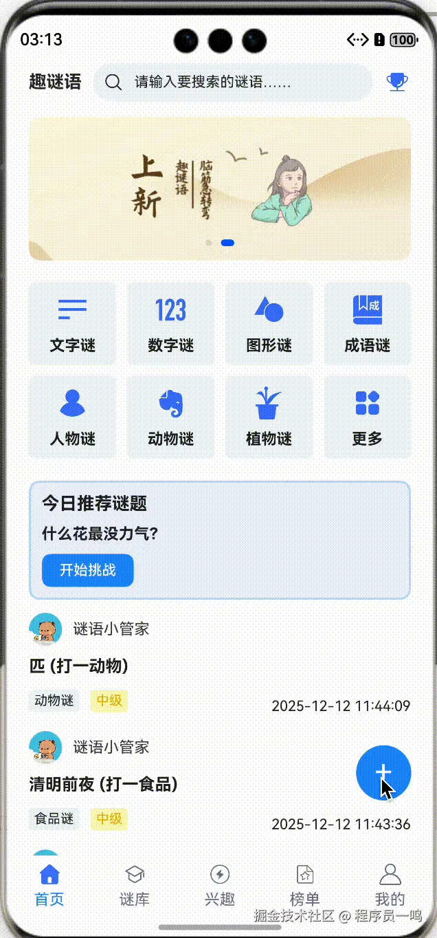 在最近上架的应用趣谜语中,有一个功能,点击悬浮菜单后,弹出子菜单,效果如下: