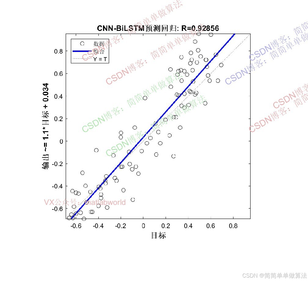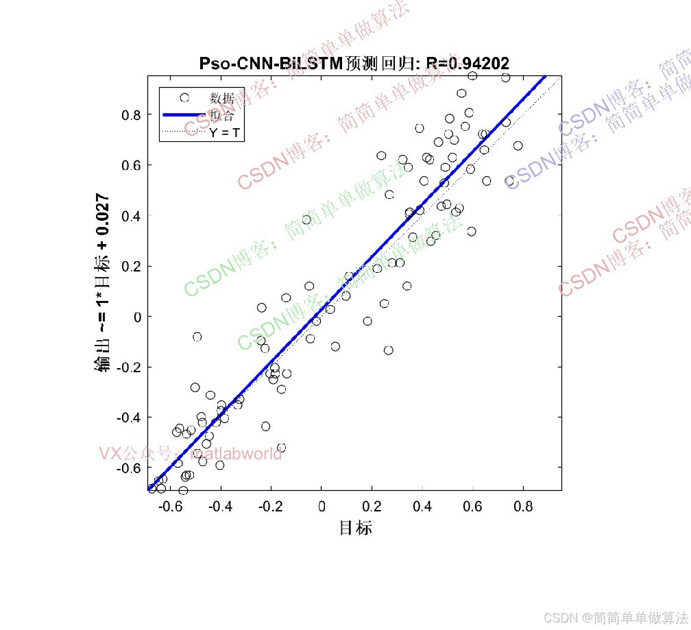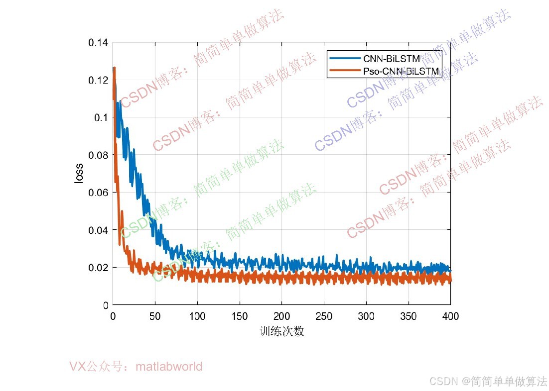 算法通过PSO优化将BiLSTM的隐含层个数和学习率作为PSO的优化变量,以CNN-BiLSTM模型在训练集上的回归预测误差作为PSO的适应度函数,通过迭代筛选最优超参数组合,再将最优超参数代入CNN-BiLSTM模型完成最终的多输入单输出回归预测。