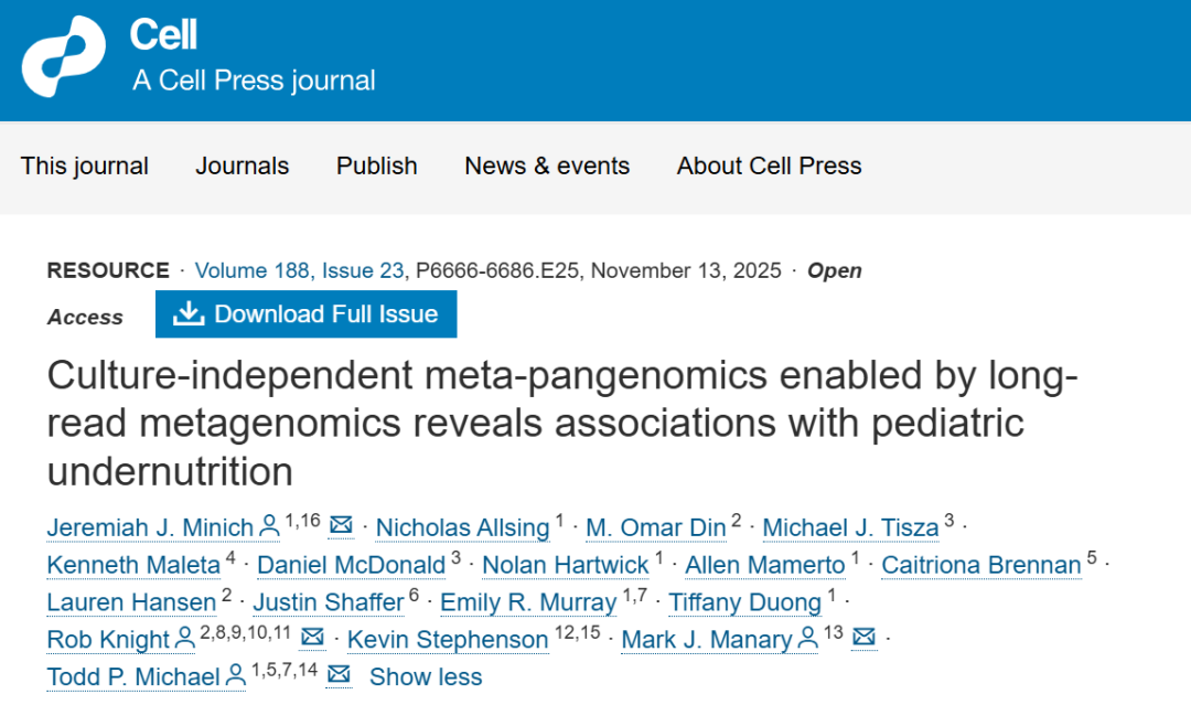 ● 通讯作者:Jeremiah J. Minich (jeremiah.minich@gmail.com), Rob Knight (robknight@ucsd.edu), Mark J. Manary (manarymj@wustl.edu), Todd P. Michael (tmichael@salk.edu)