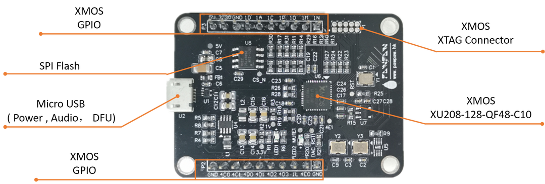 ▲ 木瓜电子 XMOS USB Audio 高性能和多功能评估板:PXUA08QF48