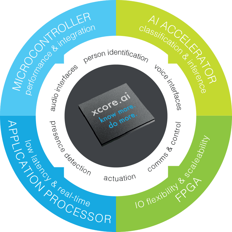 XMOS现在迅速转向AI人工智能领域。 XMOS于2016年分离出部分团队组建了Graphcore, 专注于服务器端 AI芯片,而 XMOS 继续寻求高性价格比的嵌入式智能芯片 (edge-AI)。 为了让语音成为主流,XMOS 继续发布用于智能事物的下一代高性能语音接口芯片,以及 xcore.ai系列(AIoT 的新型交叉处理器),将 AI、DSP、控制和 I/O 整合到单个芯片平台上。