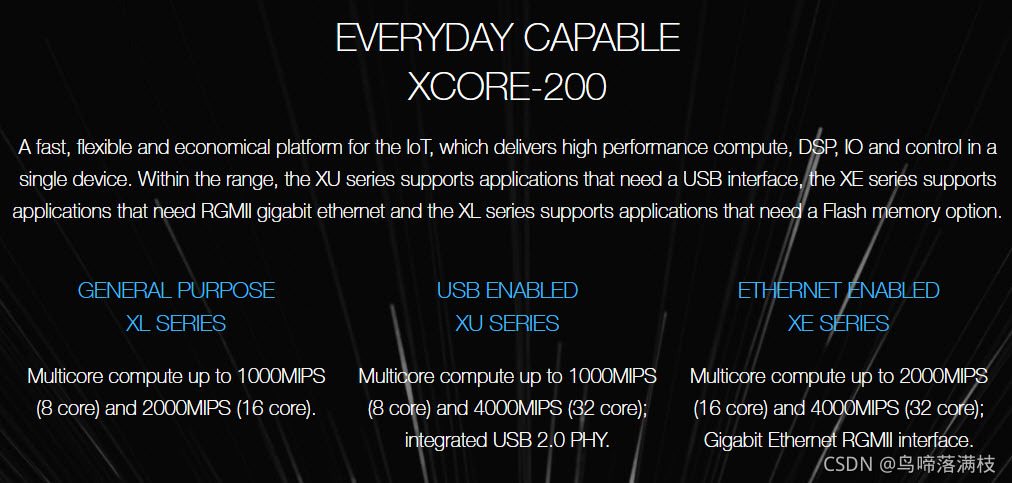 XS1为第1代XMOS产品, XCore200为第二代XMOS产品。