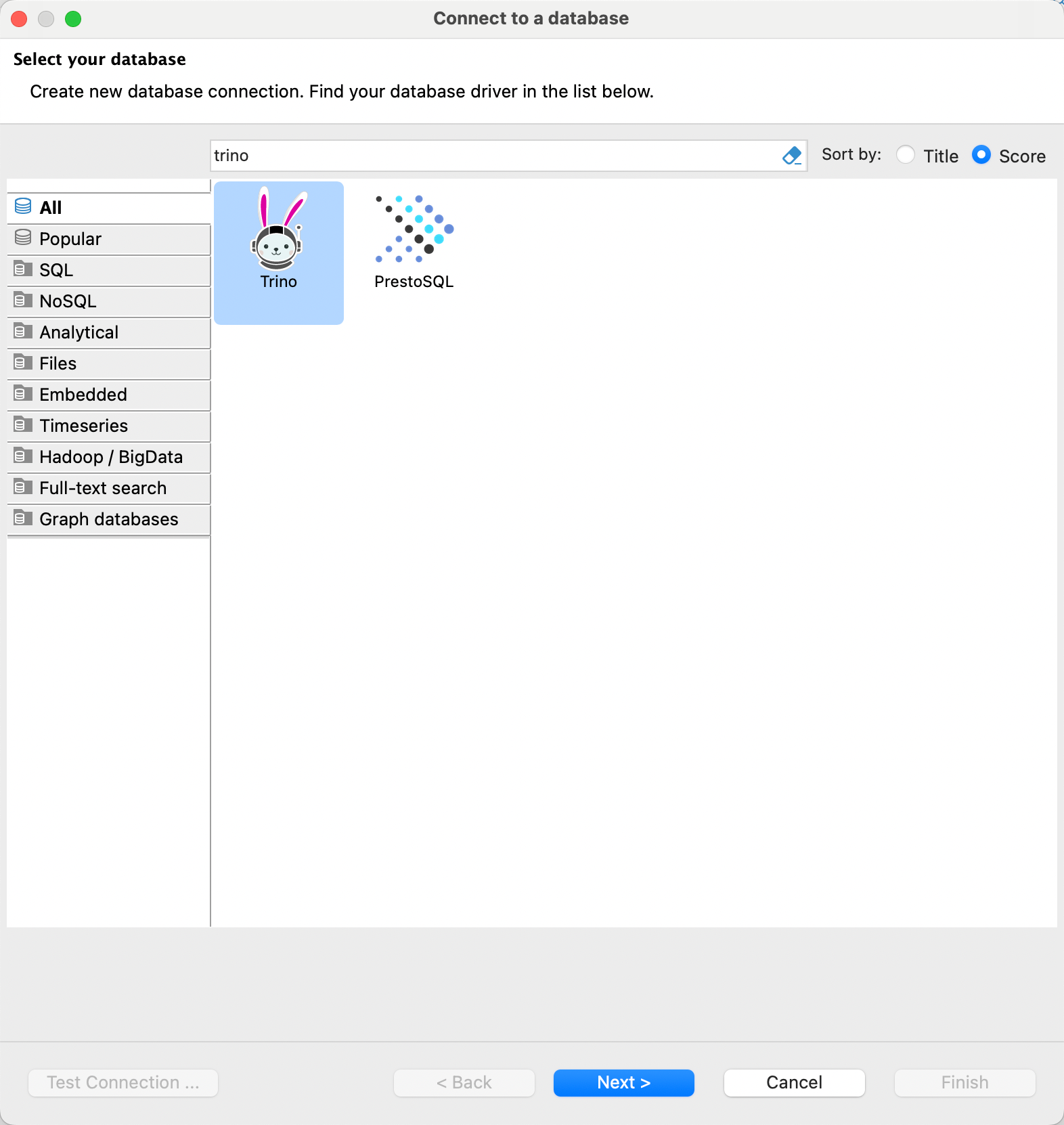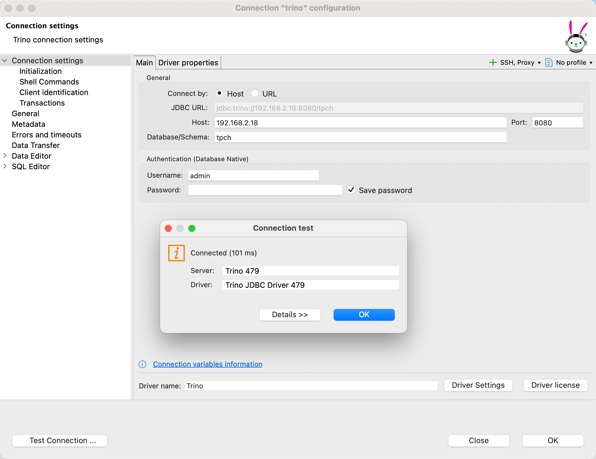 - 新建连接 :在 DBeaver 中选择 Trino 驱动。