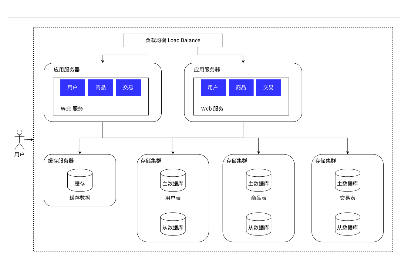 通过负载均衡器/网关服务器,采用负载均衡的方式分配请求给应用服务器(这些应用服务器跑的业务相同)