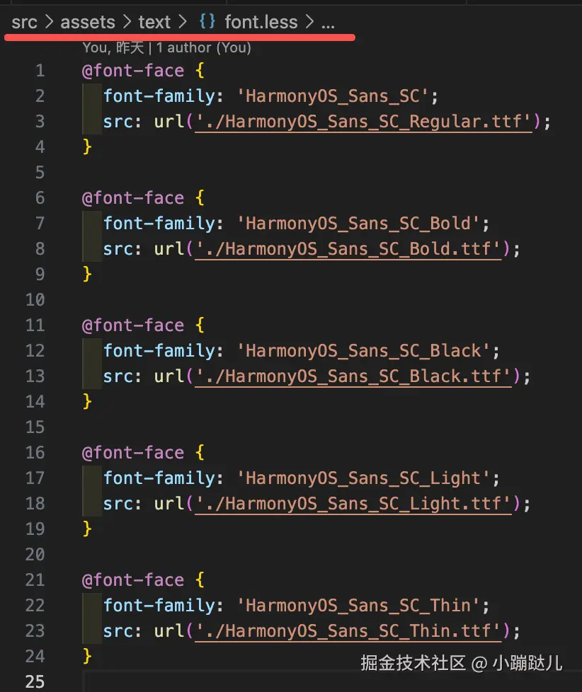 font-family而未完成字体文件的引入配置,页面端始终无法呈现设计预期的字体效果。本文将以鸿蒙字体为例,详细介绍 Vue 项目中特殊字体的引入与使用方法。