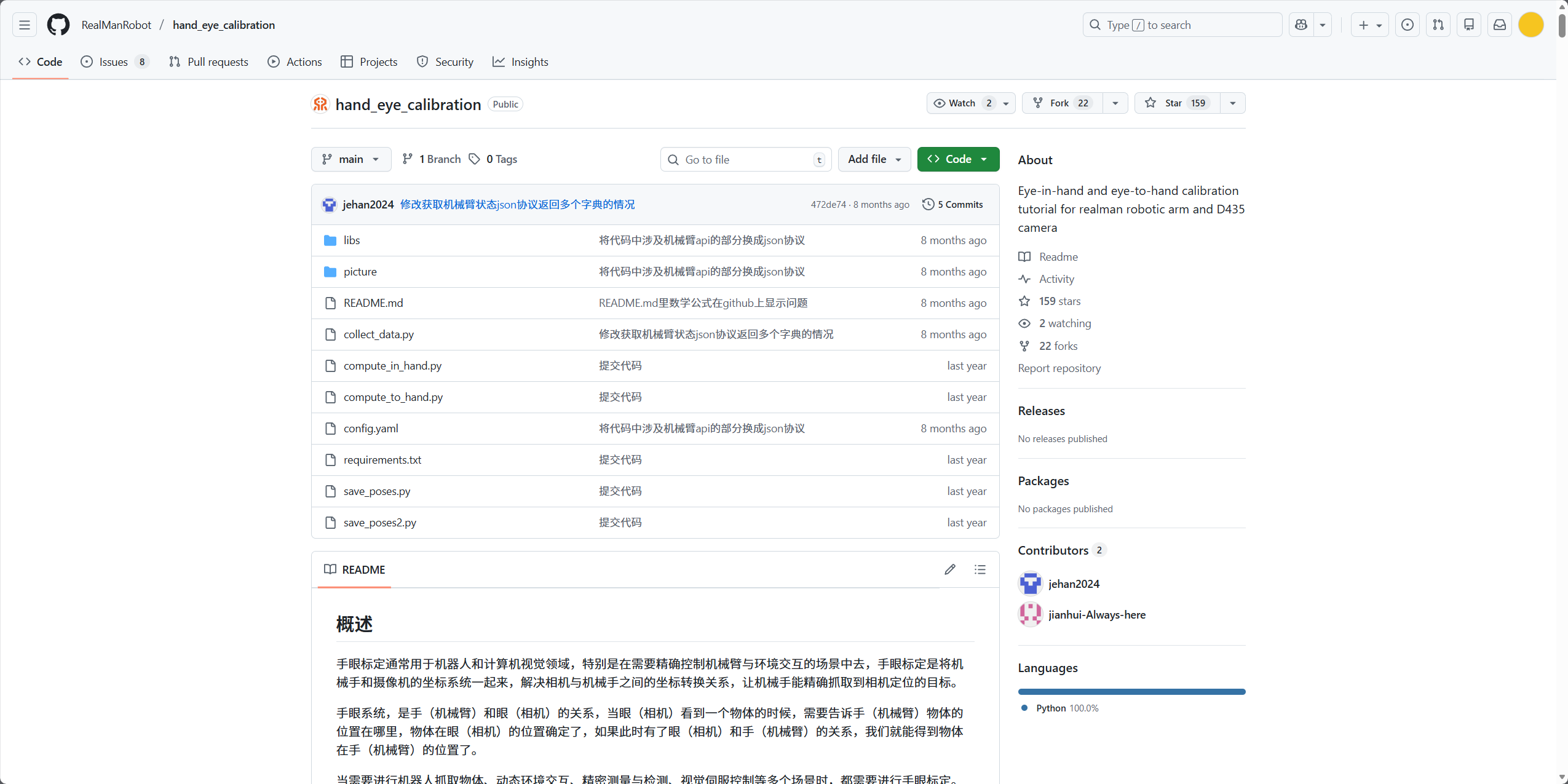 手眼标定是机器人视觉领域的关键技术,它解决了机械臂与相机之间的坐标转换问题,为精准抓取、视觉伺服等应用奠定基础。上一篇博客中我们讲解了手眼标定的概念以及原理,本文将详细解析睿尔曼官方提供的完整的手眼标定代码库,包括其结构设计、核心功能及使用方法,帮助读者快速掌握手眼标定的实现流程。