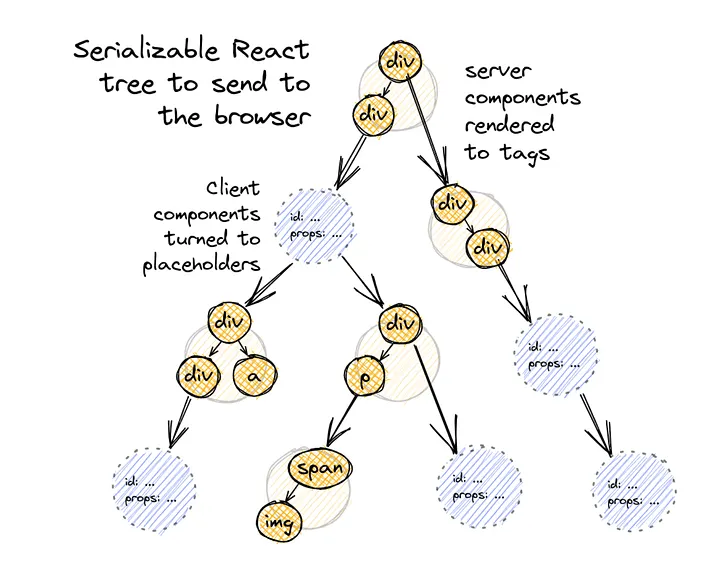 它不再返回 JSON,而是流式返回一种内部协议(常被称为 "Flight"),里面携带的东西不只是"值",还包括: