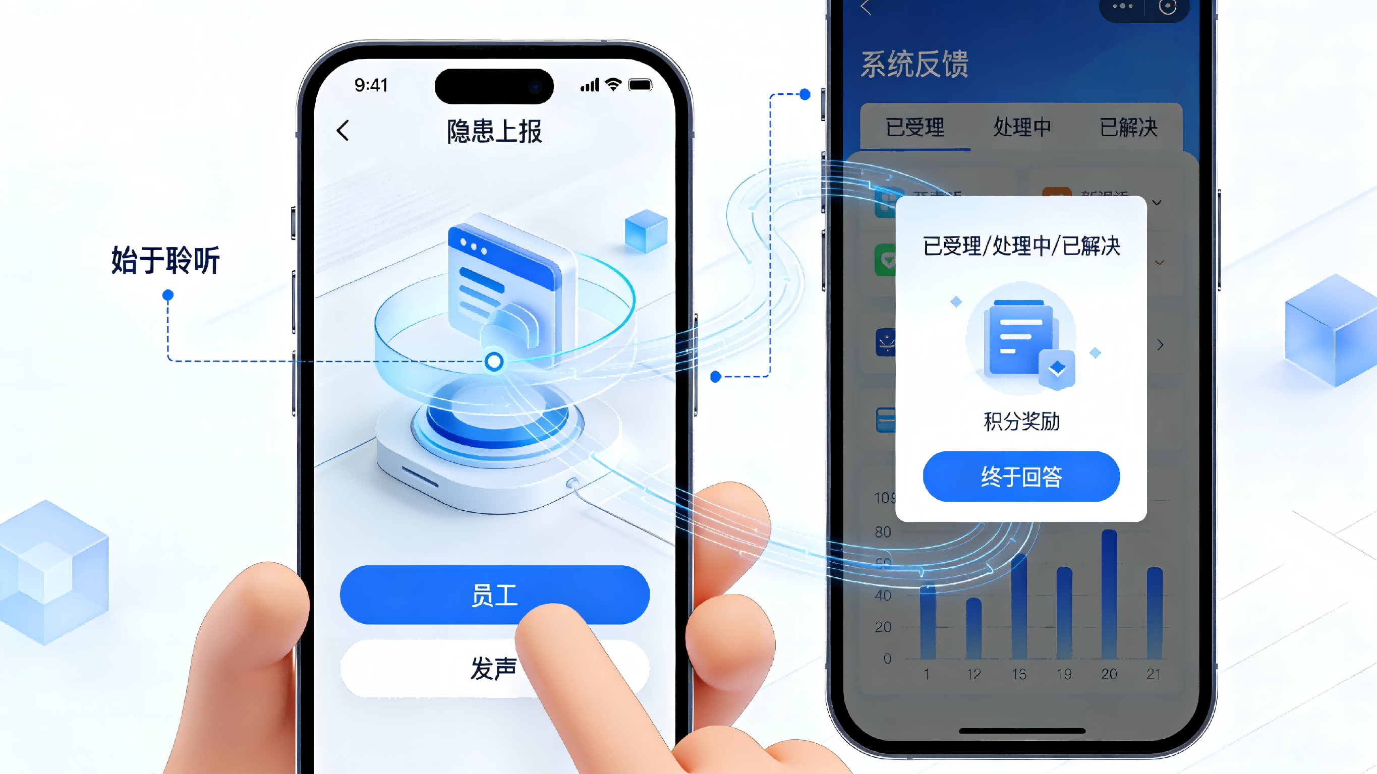 技术赋能让员工可通过App随时发声 上报隐患,这体现了沟通的始于聆听。但若上报石沉大海,则沟通失败。因此,终于回答在此表现为:系统必须对每一条上报给予及时的状态更新、处理结果与正向激励(如积分奖励)。这种积极的制度化反馈,是激发全员持续参与的核心动力。