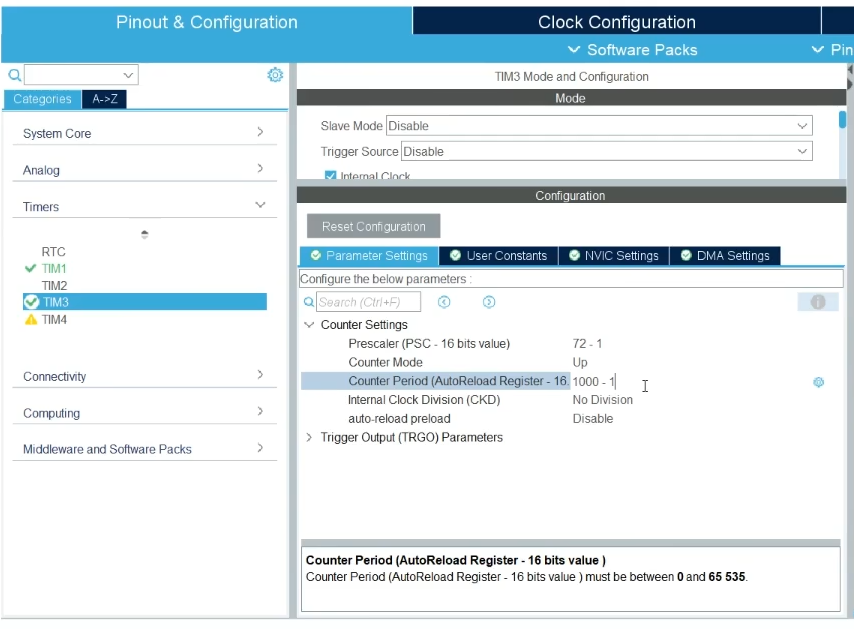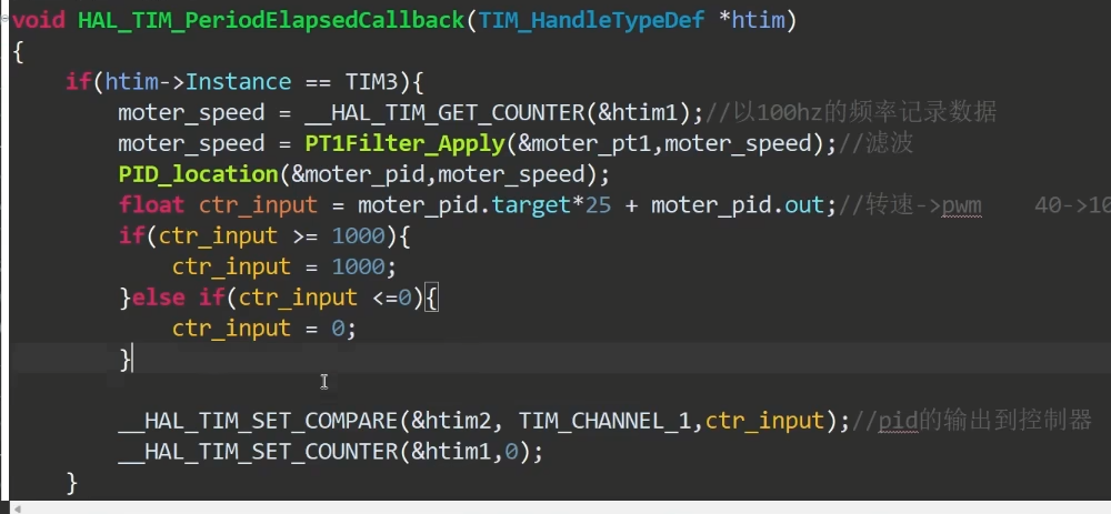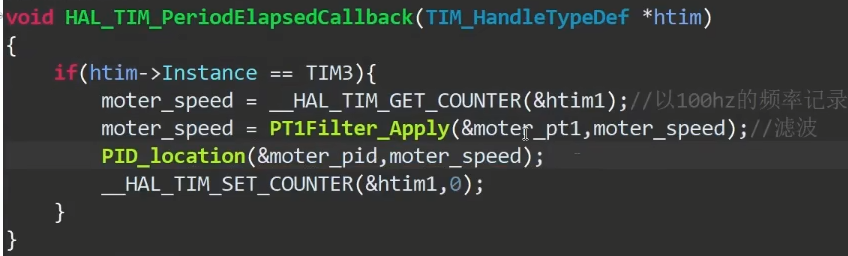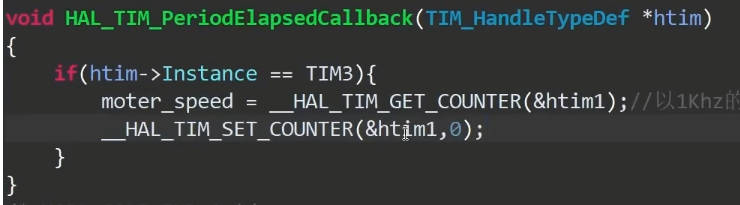 之后如果我们定时器->实例对象->==定时器3,也就是定时器3触发的中断,就执行下面的。然后我们以1000hz频率进行记录数据,之后把计数器的值进行清零。