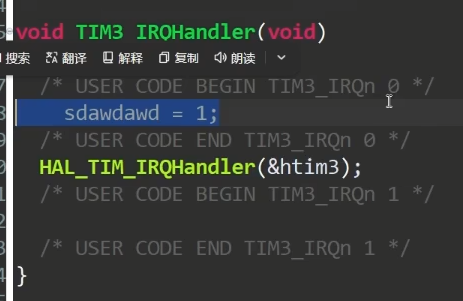 为什么不用中断函数呢,因为比如说我们在主函数里面定义了一个变量,想要在中断函数给置1,的话,那么就会保存,中断函数里面会说使用了未定义的变量,所以我们就需要使用到中断回调函数,来进行操作。