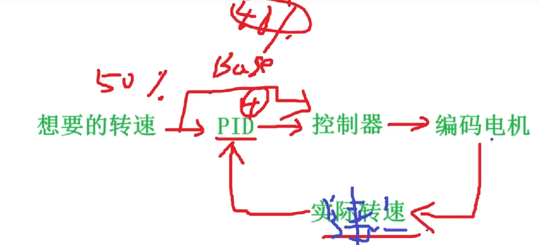 假设我们有一个电机用5V电池供电,想要让他每分钟500转,一开始电池满电时候,是可以达到要求的,但是当电池容量下降一半时候,我们知道假设电机功率是10W,当电压为2.5V时候电机就只有2.5W了,电压下降一半,功率缩小四分之一,我们转速肯定达不到要求了。所以我们就需要引入一个反馈,来对电机实现闭环控制,当电压波动下降或升高时候,转速就会根据反馈,进行自动调节。