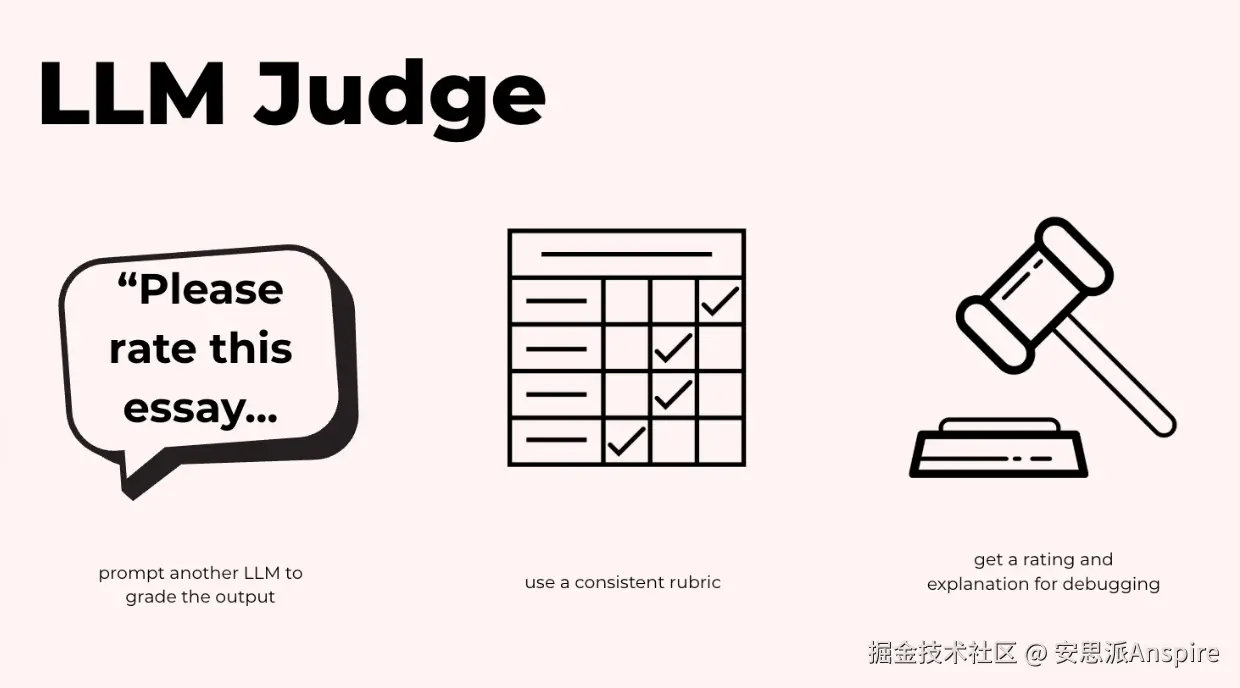 一种方法是使用第二个大语言模型(LLM)来评判输出结果。让它使用统一的评分标准,按照1到5的等级对每篇文章的质量进行评分。