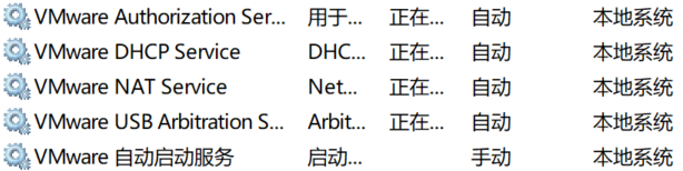 安装虚拟机时,如果出现了没有IP地址或者连不上网等情况,可以先检查一下这些服务有没有打开,有时候可能会被杀毒软件给禁用,重新换成自动,再重启以下可能就好了。