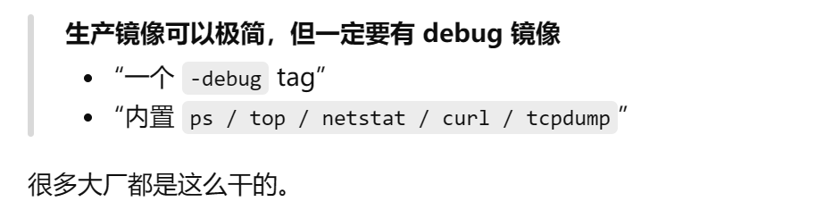 因此,一个 Debug 专用镜像 是 Kubernetes 运维体系中的必备组件。