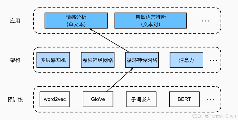 - 预训练的词向量可以表示文本序列中的各个词元。