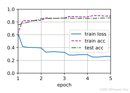 d2l.train_ch13(net, train_iter, test_iter, loss, trainer, num_epochs,