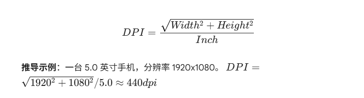 dpi (Dots Per Inch) :像素密度。即对角线每英寸包含的像素点数。这是衡量屏幕"细腻度"的物理指标。