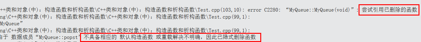 7.如果类中没有申请资源 时,析构函数可以不写 ,直接使用编译器生成的默认析构函数,如 Date ;如果默认生成的析构就可以用,也就不需要显示写析构,如 MyQueue ;但是有资源申请 时,一定要自己写析构 ,否则会造成资源泄漏,如 Stack 。