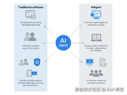 传统软件像预设轨道的火车,遇到「没见过的路况」就卡壳(比如处理客户的奇葩退款理由);而AI Agent是带脑子的「数字员工」:它能用大语言模型(LLM)理解模糊需求,还能调用工具完成实际操作(比如查订单、发邮件)。
