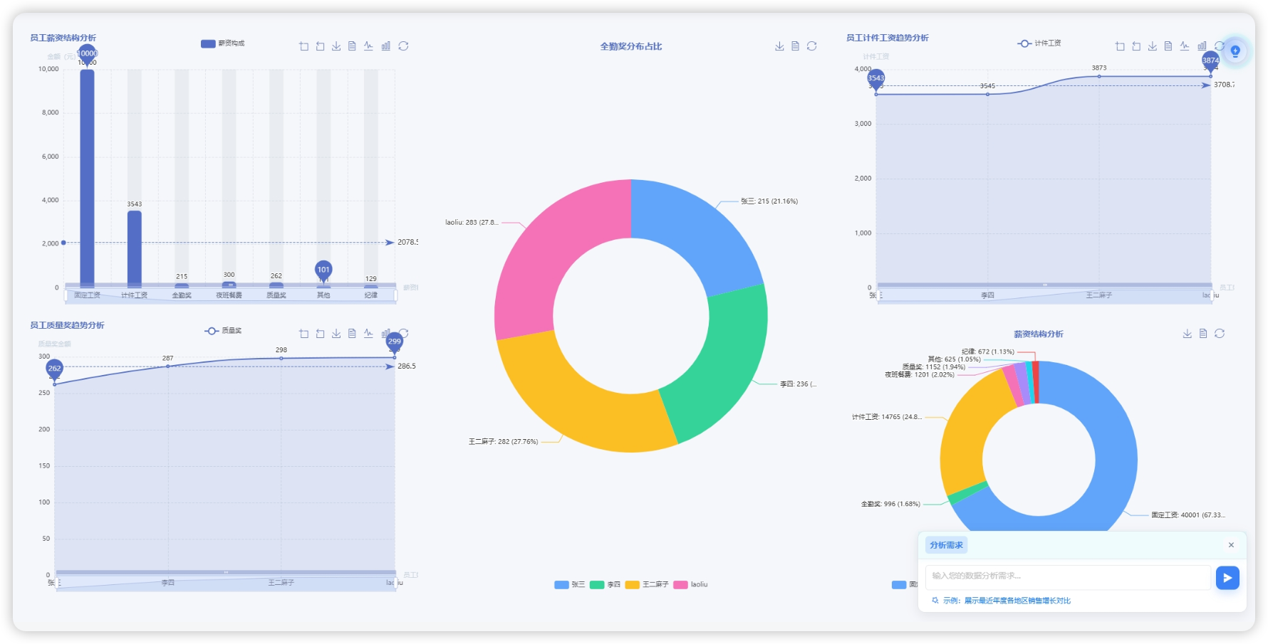 用户无需掌握 SQL 语法或复杂函数,直接通过日常对话式指令(如 "上个月华北地区销售额环比增长情况")即可触发数据检索,系统自动解析语义并关联后台数据库,实时返回结构化分析结果。