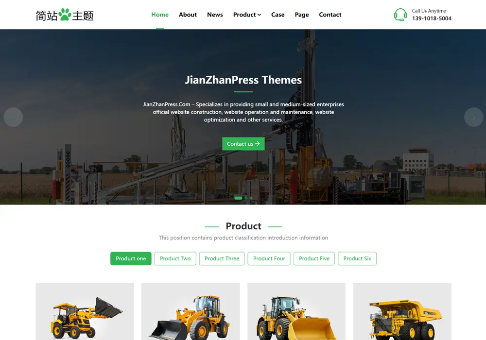 绿色的绝色wordpress主题,适合钻井、勘探设备外贸公司使用的wordpress外贸主题。