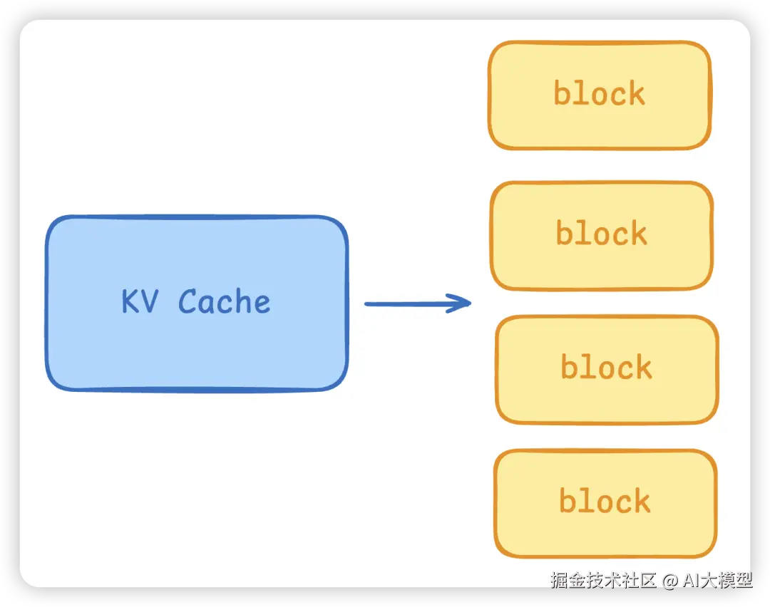 块(block),并用页表式映射管理它们,像操作系统的虚拟内存一样灵活调度。这样避免了按序列分配一大块连续内存导致的碎片化和 OOM,同时支持动态并发与复用。 - 复用与共享: 在多分支(如 beam search)和