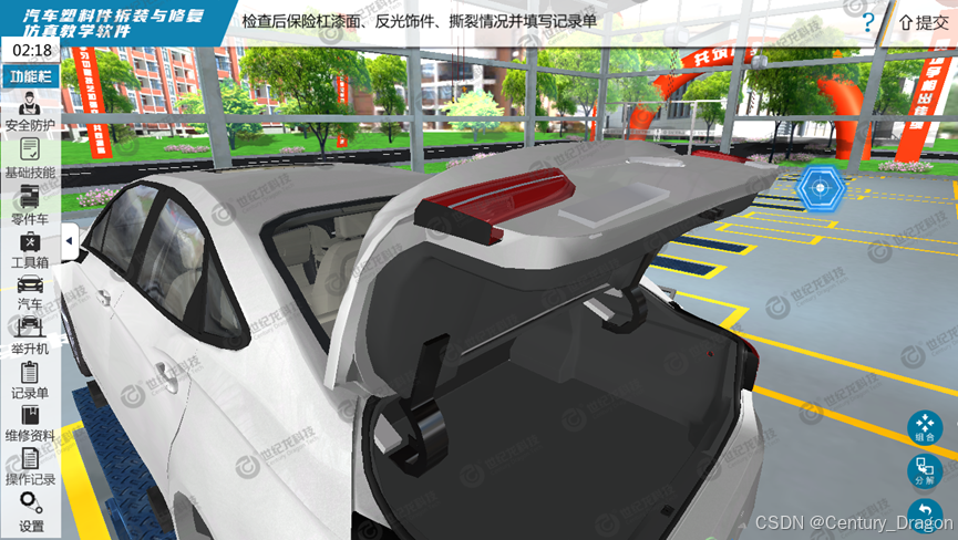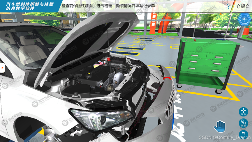 这款汽车塑料件拆装与修复仿真教学软件,从构思之初便锚定一个方向------让流程有章可循,让场景贴近真实,让学习既有序又生动。我们依照实操的标准规范来设计每一条流程,如同为学习者铺设一条清晰可见的轨道,使他们在探索中不易迷失方向。