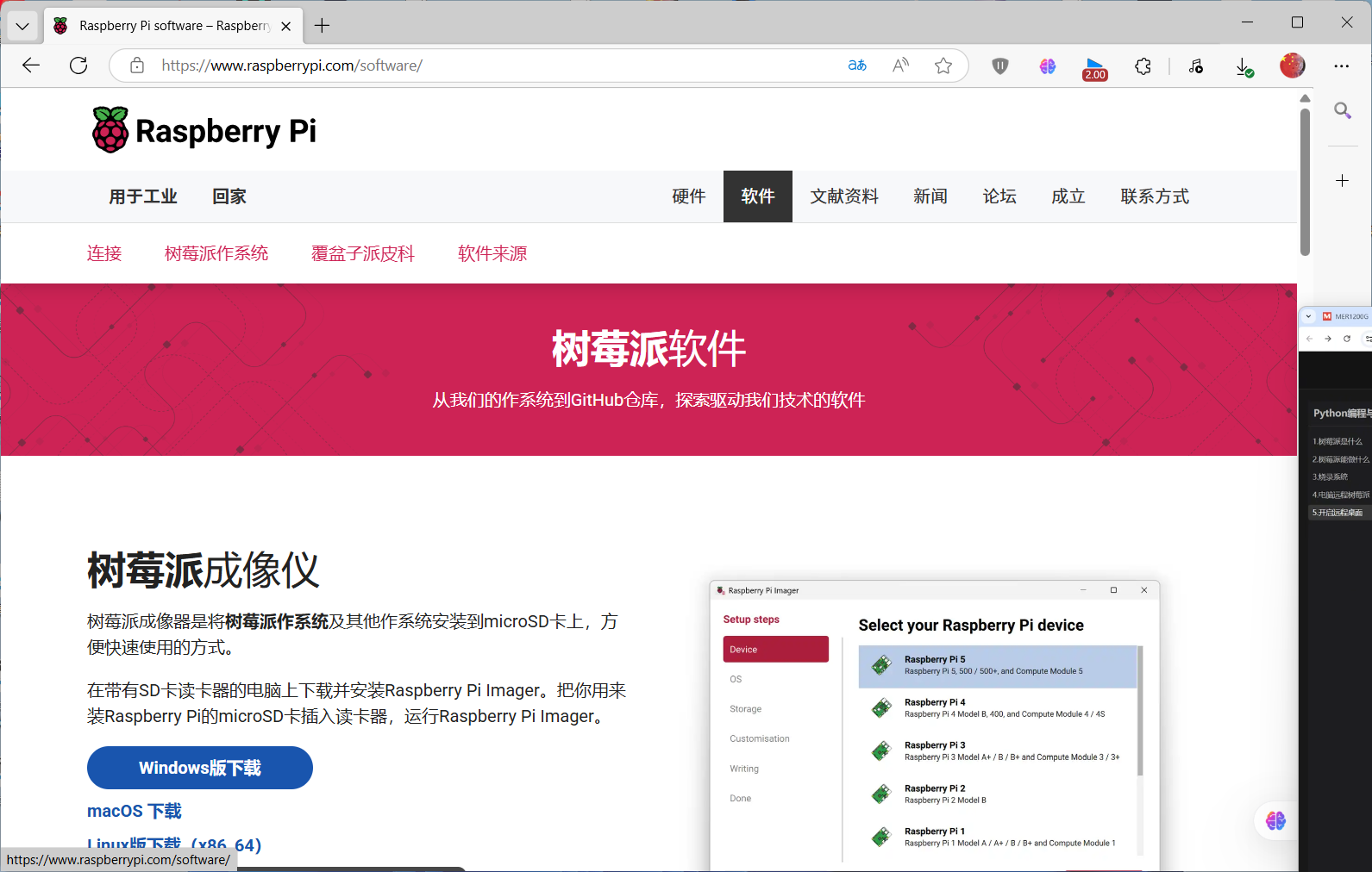 下载并安装Raspberry Pi Imager:访问 官方工具下载页,根据自己的电脑系统(Windows/macOS/Linux)选择对应版本,安装完成后打开;