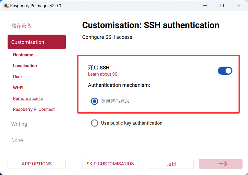 密码错误:确认输入的用户名和密码是否正确,默认用户名是pi,密码是烧录时设置的密码。