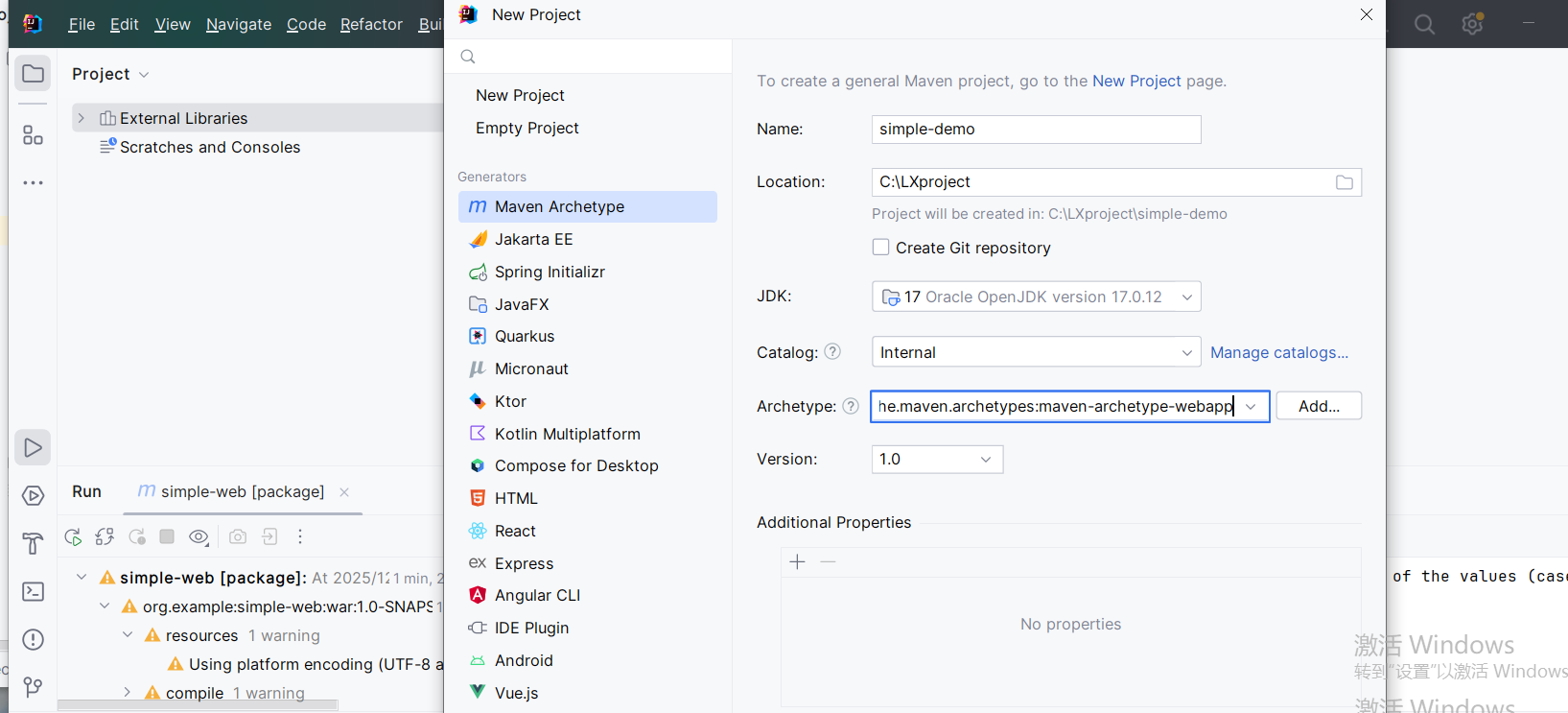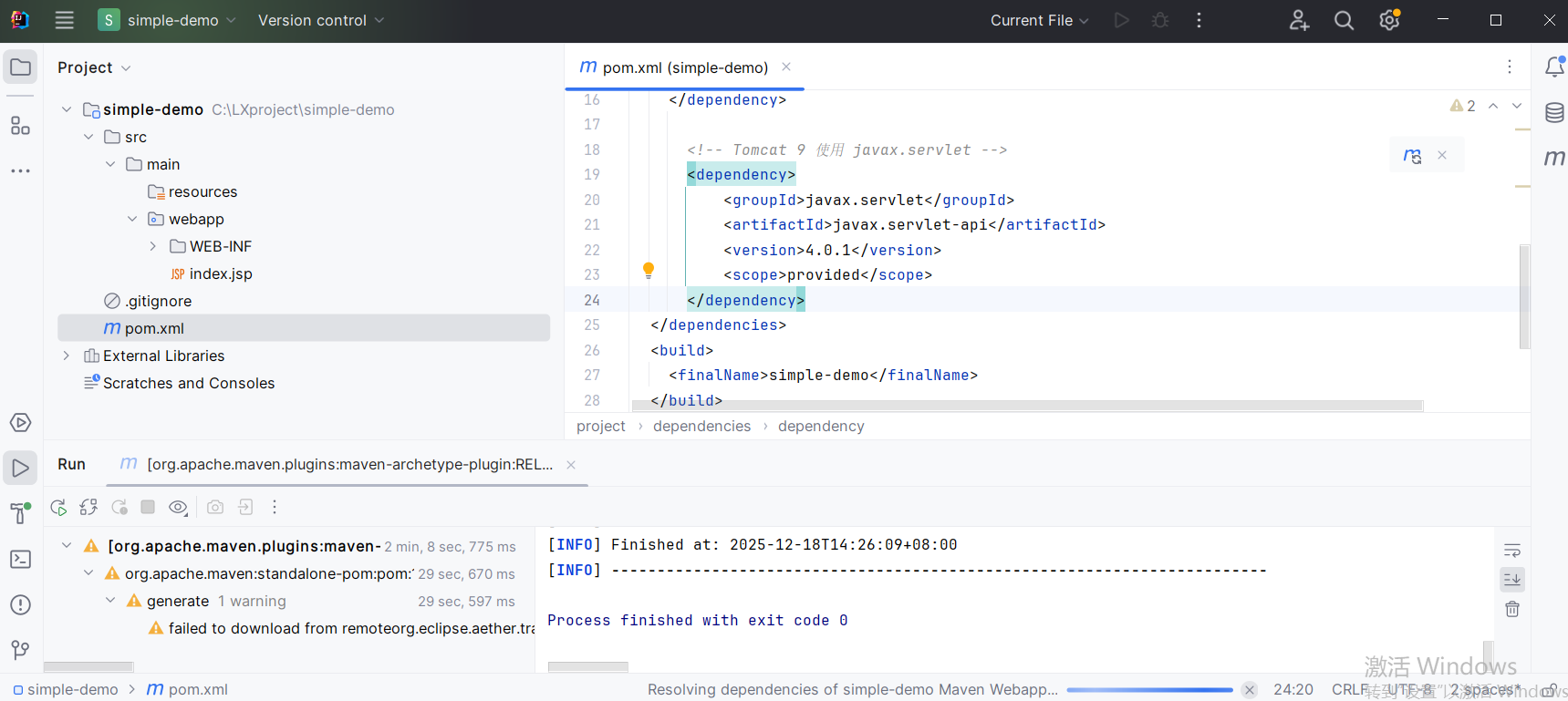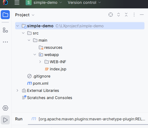 simple-web/ ├── src/ │ └── main/ │ ├── resources/ │ └── webapp/ │ ├── WEB-INF/ │ │ └── web.xml (可选) │ └── index.jsp (默认首页) └── pom.xml