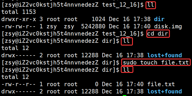 可以看到此时我们已经将分区挂载到目录dir,往目录里面创建文件,就相当于往分区里面创建: