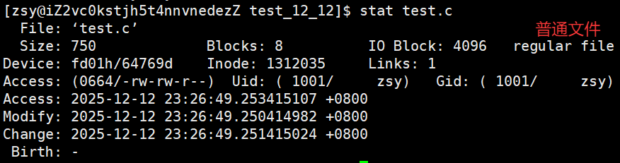 除了上述方式,还有⼀个stat命令能够看到更多信息: