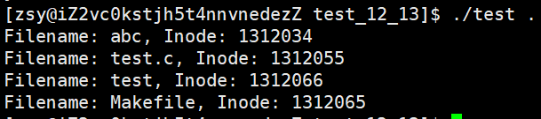 printf("Filename: %s, Inode: %lu\n", entry->d_name, (unsigned long)entry->d_ino);