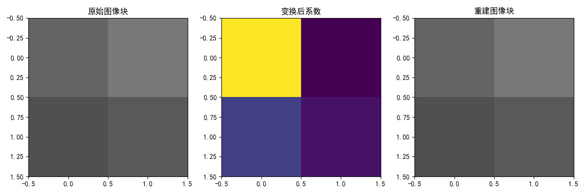 # 定义一个简单的2x2正交变换矩阵(示例:类似DCT的简化版)