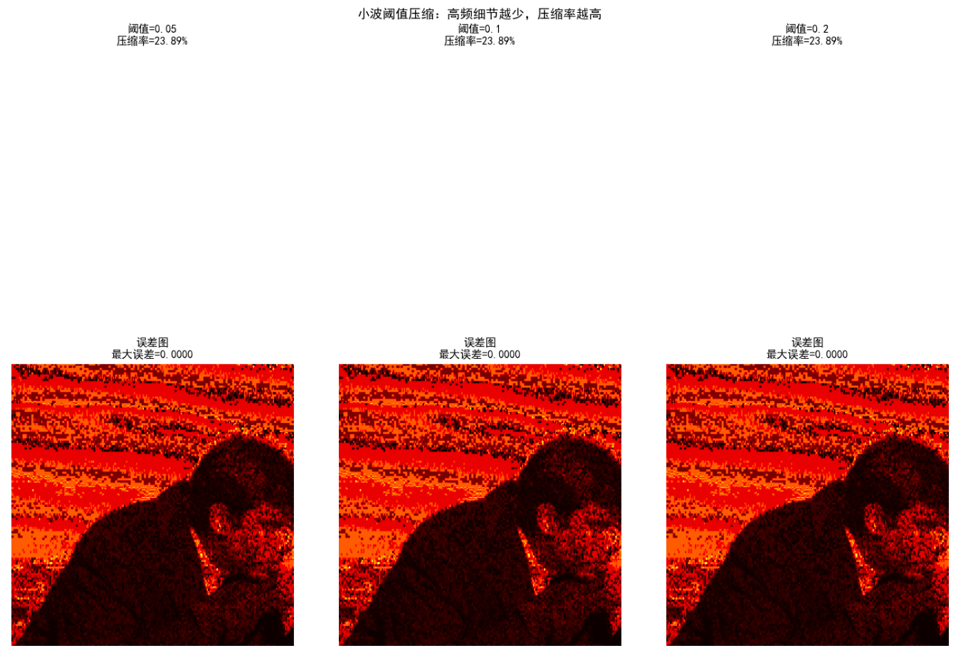 axes[0, idx].set_title(f'阈值={thr}\n压缩率={ratio:.2%}')