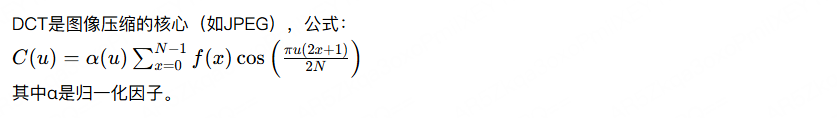 - 正交变换(如DCT)能保留能量且易于逆变换。