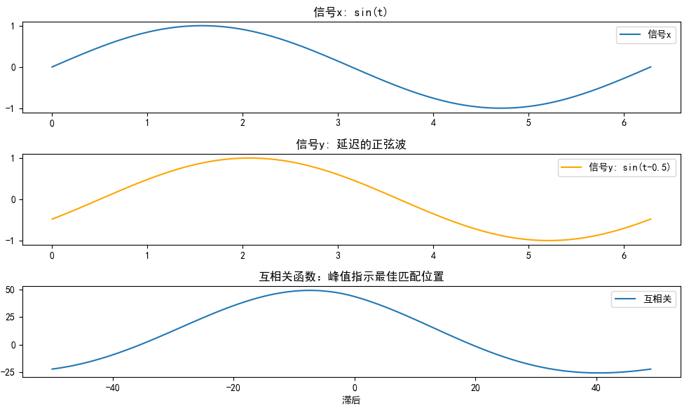 代码示例:计算两个信号的互相关 我们用两个简单信号演示。