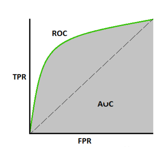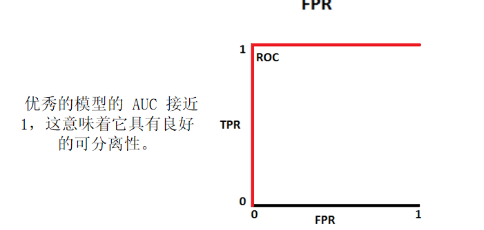 - AUC 是 ROC 曲线与坐标轴围成的面积,越接近 1 越好。