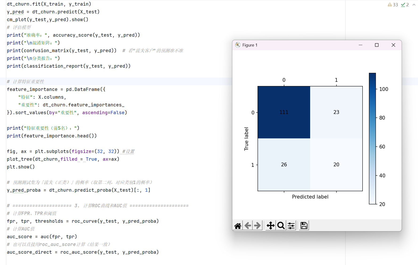 predict_proba()输出正类概率; - 回归树:若强行用于二分类(如将连续标签二值化),需先将预测值映射为概率(或直接用预测值作为得分)。