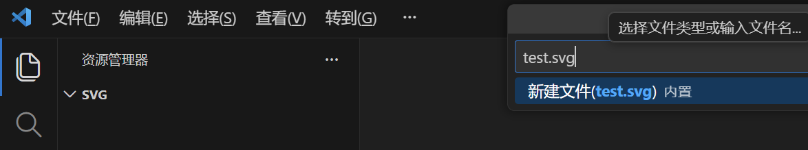 首先既然svg文件是将代码转化成图片形式的一种文件格式,那么就能通过vscode去打开和创建。所以我们以新建text.svg文件为例。