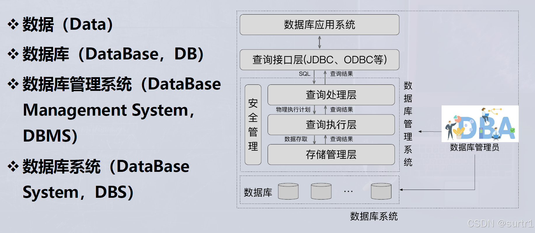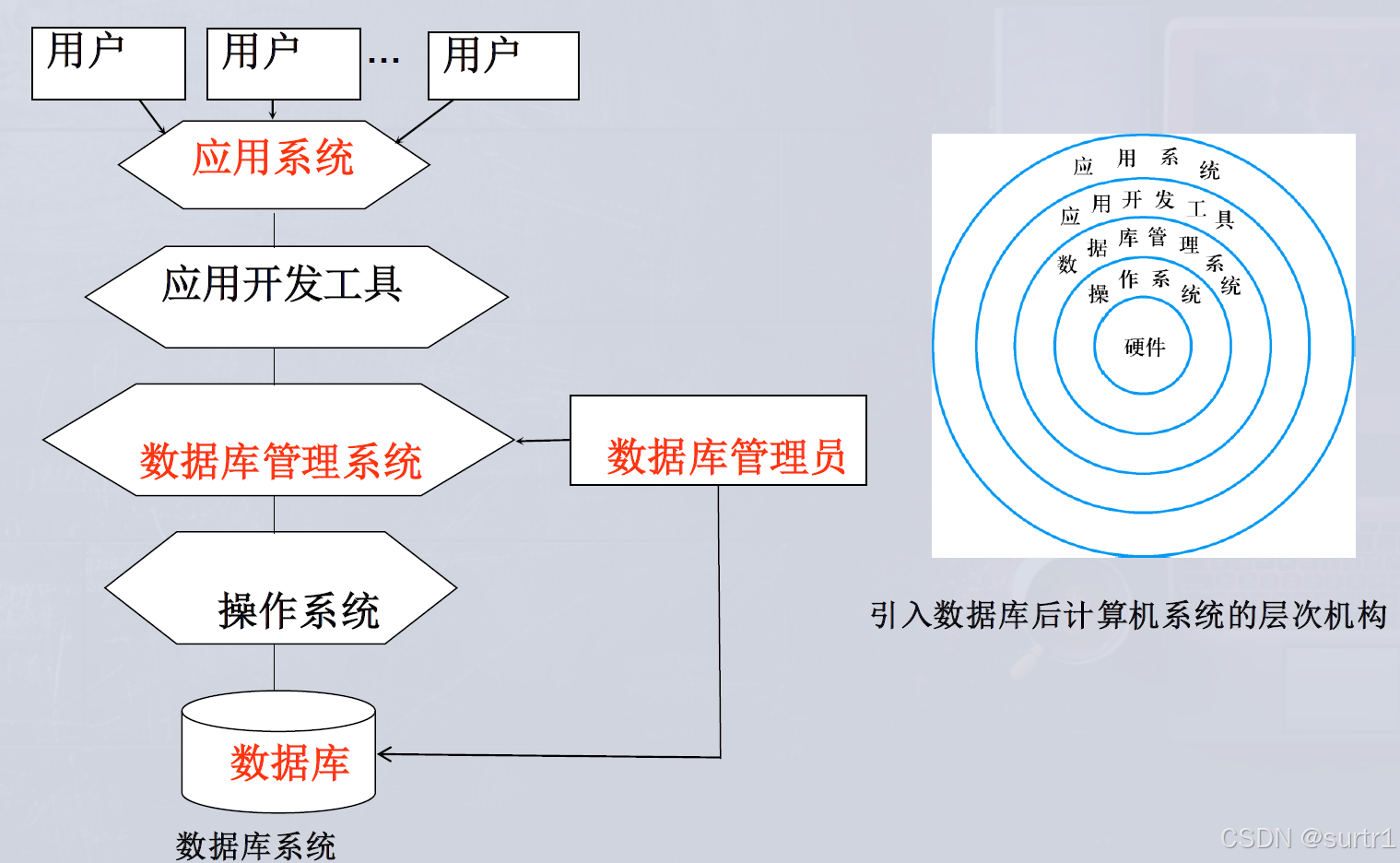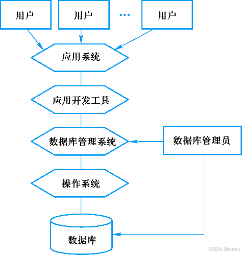 - 数据库管理系统(及外围的应用开发工具) (DBMS)